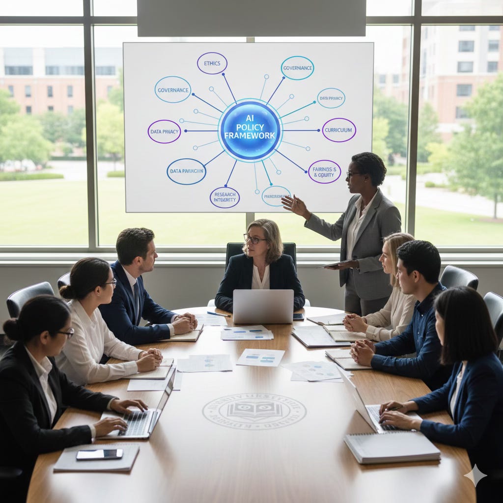Navigating the complexities of AI integration in higher education and crafting a policy that fosters innovation while upholding academic integrity.